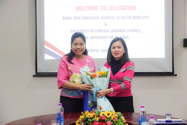 Tại buổi làm việc, TS. Huỳnh Ngọc Mai Kha đã gửi lời cảm ơn đến Tổng Lãnh sự quán Thái Lan vì sự hỗ trợ quý báu, góp phần thúc đẩy sự phát triển mạnh mẽ của ngành Tiếng Thái tại Nhà trường.