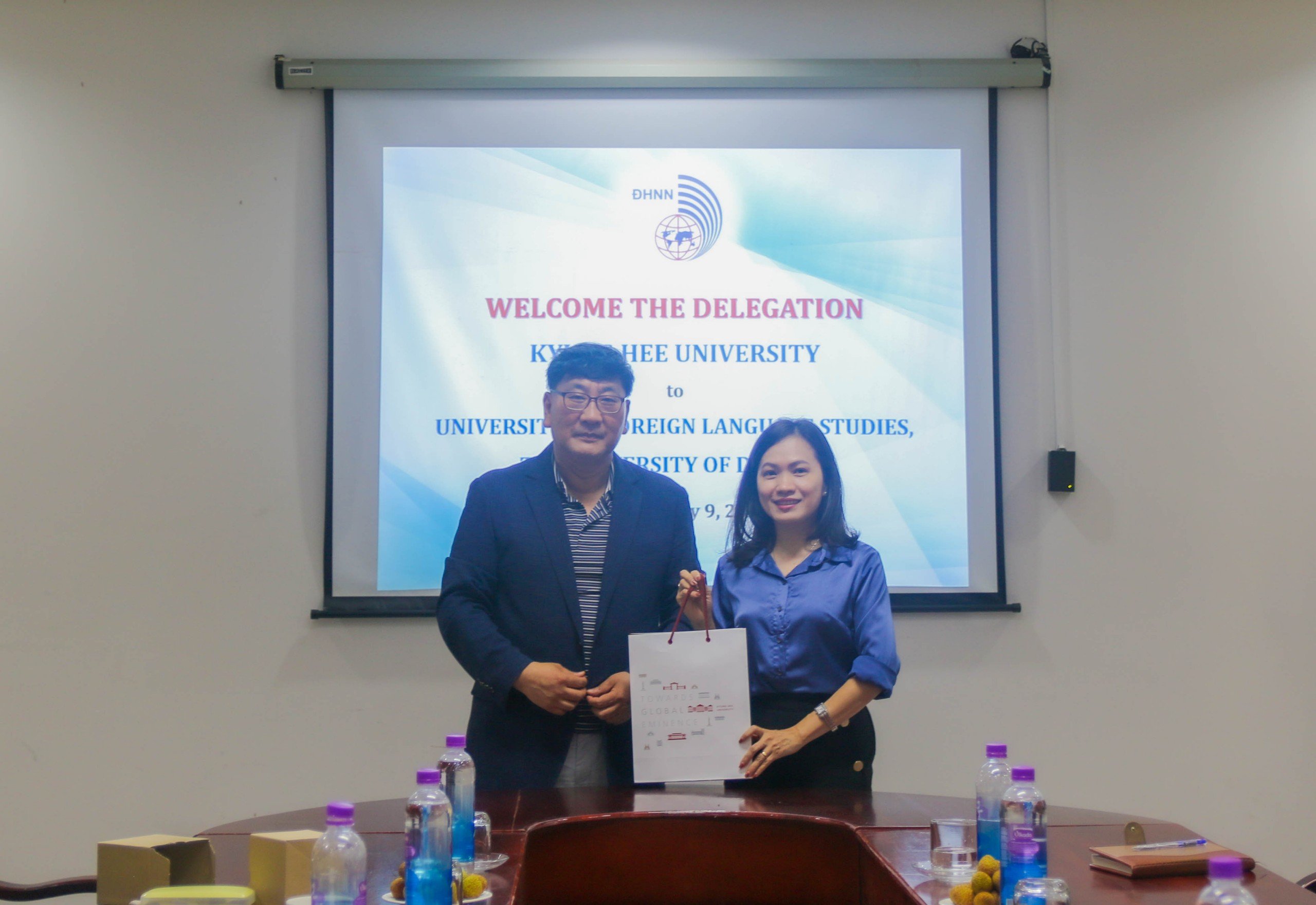 Tặng quà lưu niệm cho đại diện Trường Đại học Kyunghee Hàn Quốc.