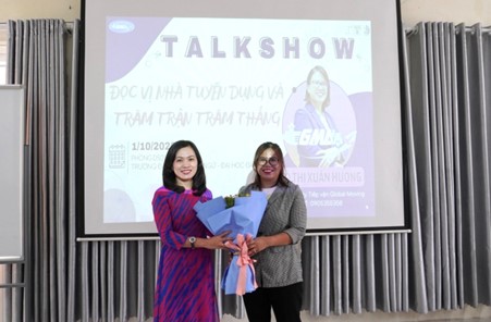 Phát biểu tại buổi Tọa đàm, TS. Huỳnh Ngọc Mai Kha – Phó Hiệu trưởng Nhà trường, thay mặt cho lãnh đạo nhà trường gửi lời cảm ơn đến diễn giả Xuân Hương, đồng thời nhấn mạnh tầm quan trọng của việc hợp tác giữa Nhà trường và doanh nghiệp trong hoạt động đào tạo của Nhà trường. Bên cạnh đó, TS. Huỳnh Ngọc Mai Kha cũng khẳng định, Nhà trường luôn hỗ trợ và đồng hành với các khoa chuyên môn tổ chức thêm nhiều hơn nữa những buổi tọa đàm đầy ý nghĩa.