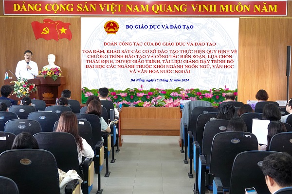 Phát biểu chào mừng tại Tọa đàm, PGS.TS. Nguyễn Văn Long – Phó Hiệu trưởng Trường Đại học Ngoại ngữ, ĐHĐN bày tỏ vinh dự khi Nhà trường được Bộ GD&ĐT lựa chọn là đơn vị phối hợp tổ chức Tọa đàm và thực hiện công tác khảo sát. Phó Hiệu trưởng cùng bày tỏ vui mừng khi được chào đón Đoàn công tác của Bộ GD&ĐT cũng như đại diện lãnh đạo đến từ 10 cơ sở GDĐH trong khu vực miền Trung đến tham dự Tọa đàm.