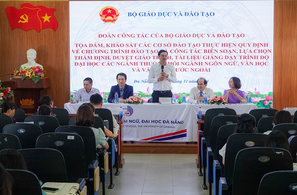 Phó Vụ trưởng Đặng Văn Huấn cho biết thêm, trước đó, Đoàn công tác Vụ GDĐH đã tiến hành khảo sát các cơ sở đào tạo tại khu vực miền Bắc. Tại buổi Tọa đàm, Phó Vụ trưởng bày tỏ mong muốn được lắng nghe các báo cáo về tình hình thực tiễn triển khai CTĐT khối ngành NN, VH&VHNN, cũng như các ý kiến phản hồi về những khó khăn, vướng mắc từ các cơ sở GDĐH trong tổ chức thực hiện. Từ đó đưa ra các đề xuất, khuyến nghị điều chỉnh, bổ sung các chính sách, quy định về đào tạo, phát triển chương trình và tài liệu giảng dạy của các cơ sở GDĐH đào tạo các ngành thuộc Khối ngành NN, VH&VHNN.