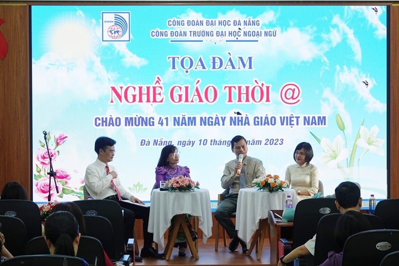 Chủ tịch Công đoàn Nhà trường bày tỏ hy vọng Chương trình Tọa đàm là dịp để các Thầy, Cô giáo và CBVC Nhà trường cùng gặp gỡ, trao đổi, chia sẻ với nhau những câu chuyện thú vị, những trải nghiệm vui buồn của nghề dạy học. Qua đó, sẽ có những thông tin bổ ích giúp các Thầy, Cô hoàn thiện bản thân trong công tác giảng dạy, góp phần nâng cao chất lượng đào tạo của Nhà trường.
