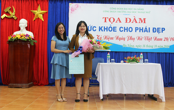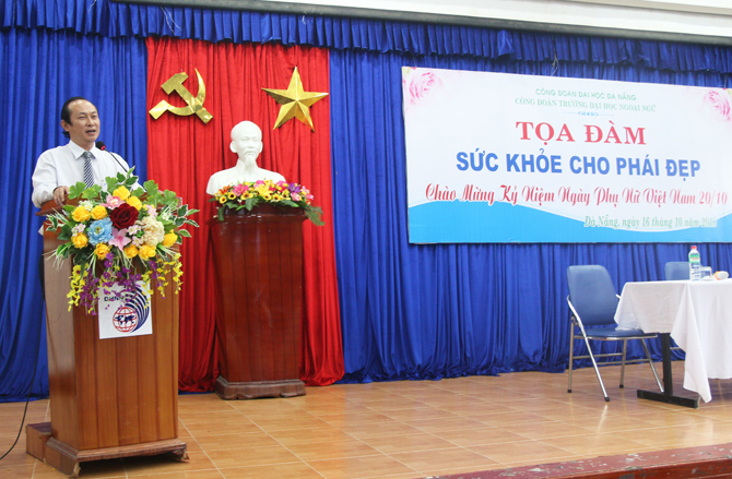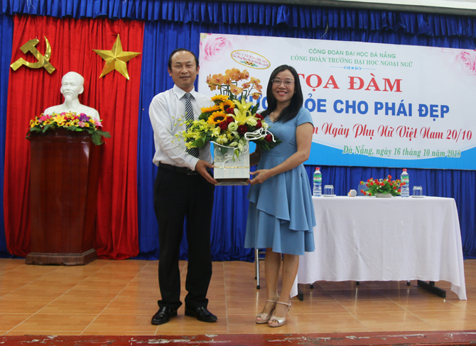 Đại diện lãnh đạo Trường Đại học Ngoại ngữ – Đại học Đà Nẵng, PGS.TS. Trần Hữu Phúc đã chúc mừng các chị em nhân ngày 20/10 với những lời chúc tốt đẹp nhất, đồng thời gửi gắm, kêu gọi đội ngũ cán bộ, giảng viên nữ Nhà trường tiếp tục phấn đấu thực hiện tốt mọi nhiệm vụ được giao trên từng cương vị công tác, tích cực học tập nâng cao trình độ về mọi mặt.