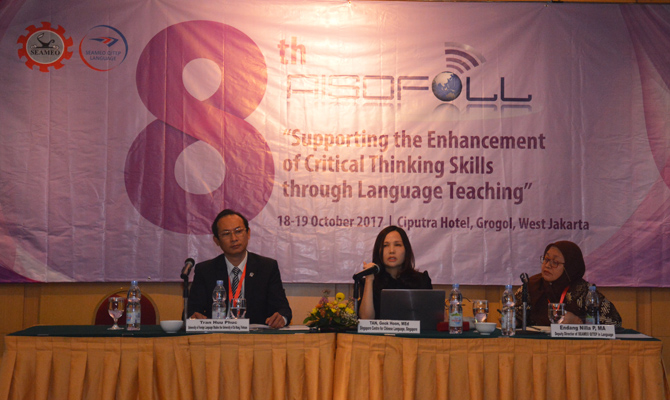 Các báo cáo viên phiên toàn thể và Ban Giám đốc Trung tâm SEAMEO QITEP in LANGUAGE tại Hội nghị