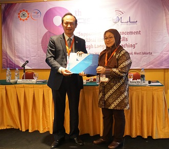 Phó Giám đốc Trung tâm SEAMEO QITEP in LANGUAGE trao chứng nhận báo cáo phiên toàn thể (keynote speaker) cho TS. Trần Hữu Phúc