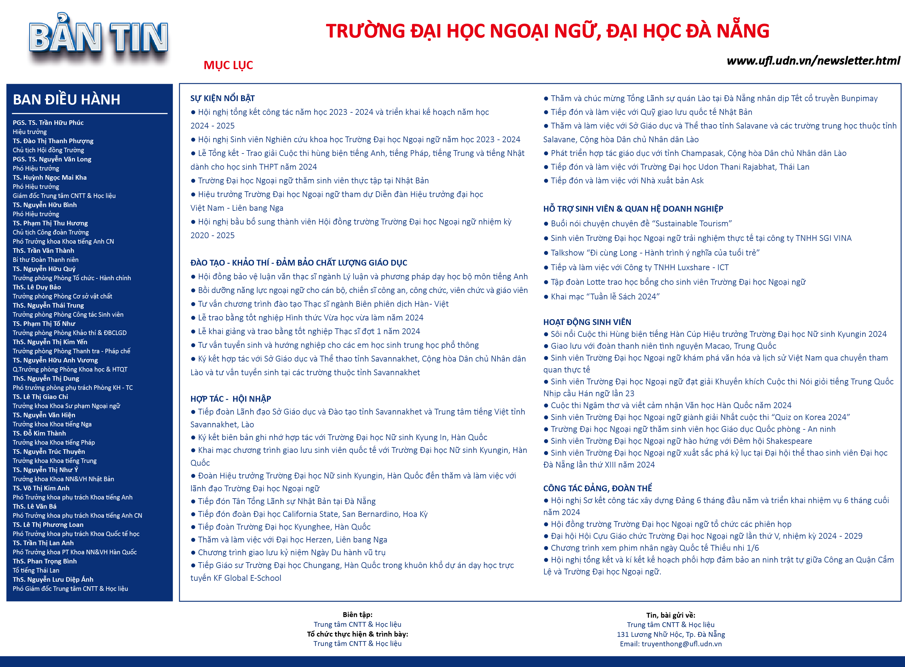 Trường Đại học Ngoại ngữ, Đại học Đà Nẵng giới thiệu Bản tin – Newsletter quý 2 năm 2024