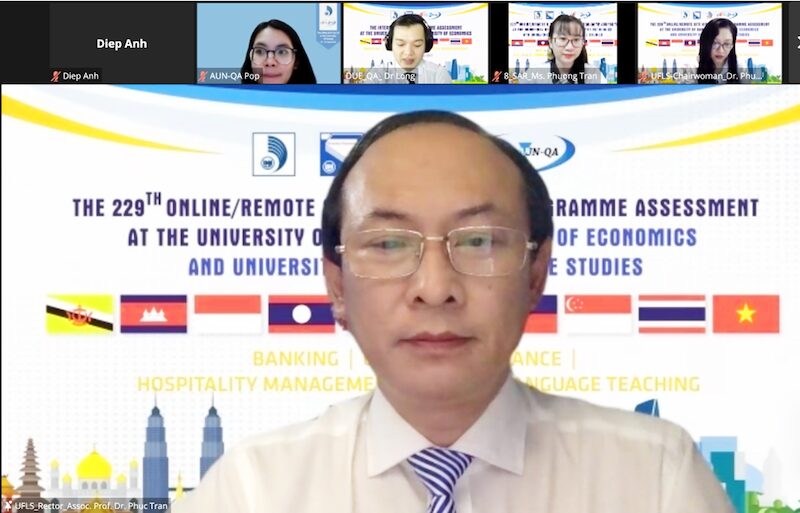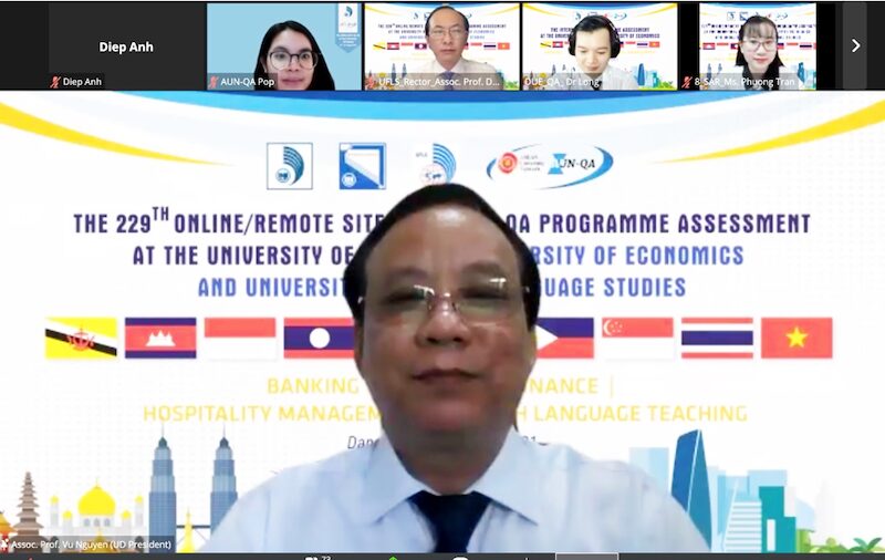 Phát biểu tại buổi khai mạc, bà Myrna Austria – Đại diện Đoàn kiểm định đã gửi lời chúc mừng đến toàn thể cán bộ, giảng viên, sinh viên Trường Đại học Ngoại ngữ và Trường Đại học Kinh tế. Theo đại diện Đoàn đánh giá ngoài của AUN, đây là đợt Đánh giá ngoài lần thứ 229 của AUN. Đoàn đánh giá của AUN sẽ làm việc, khảo sát và đánh giá các CTĐT theo phương thức trực tuyến, đảm bảo các tiêu chí khách quan, minh bạch, công tâm và chính xác.
