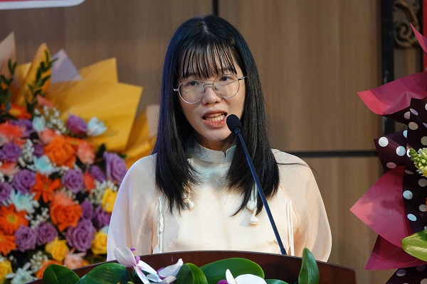 Sinh viên Nguyễn Hoàng Nhi đại diện phát biểu