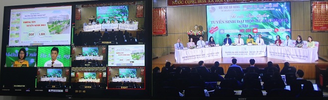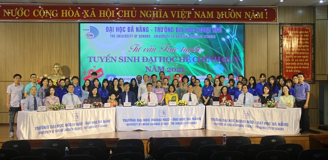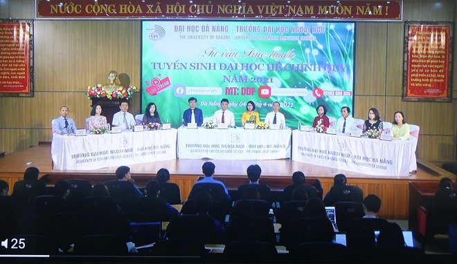 PGS.TS. Trần Hữu Phúc – Hiệu trưởng Nhà trường đã ghi nhận, biểu dương các đơn vị đã phối hợp tổ chức thành công Chương trình tư vấn trực tuyến livestream tuyển sinh đại học chính quy năm 2021. PGS.TS. Nguyễn Văn Long, TS. Huỳnh Ngọc Mai Kha – Phó Hiệu trưởng cùng lãnh đạo 8 Khoa Nhà trường đã giới thiệu, giải thích chu đáo, cặn kẽ những thông tin cơ bản, cần thiết đối với các thí sinh. Năm 2021, Trường Đại học Ngoại ngữ – Đại học Đà Nẵng thực hiện công tác tuyển sinh trong cả nước và nước ngoài với 1.800 chỉ tiêu cho 18 ngành đào tạo trong đó có 7 ngành Chất lượng cao gồm Ngôn ngữ Anh (Tiếng Anh, Tiếng Anh Thương mại, Tiếng Anh Du lịch), Ngôn ngữ Trung (Tiếng Trung), ngôn ngữ Nhật, ngôn ngữ Hàn Quốc, Quốc tế học, Đông phương học với 5 phương thức xét tuyển, gồm:
