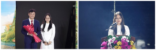 Tại Chương trình, sinh viên Văn Thị Ánh Ngọc (lớp 24SPA01) đã đại diện cho các tân sinh viên được vinh danh và khen thưởng phát biểu bày tỏ niềm vinh dự và lòng biết ơn sâu sắc; trân trọng cám ơn sự quan tâm của quý cấp lãnh đạo, gia đình, các doanh nghiệp, nhà tài trợ. Đồng thời, cam kết và xin hứa sẽ không ngừng phấn đấu trong học tập và rèn luyện, xứng đáng với danh hiệu và lịch sử truyền thống của Nhà trường.