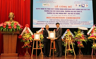 PGS.TS Nguyễn Quý Thanh trao Giấy chứng nhận Kiểm định Chất lượng Giáo dục Đại học cho Hiệu trưởng Trường Đại học Ngoại ngữ – ĐHĐN.