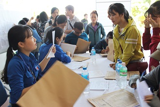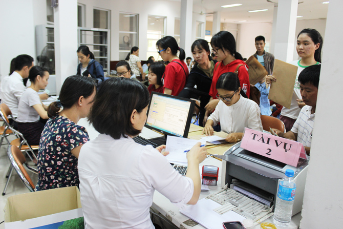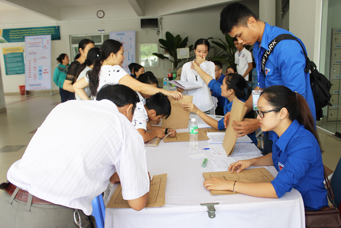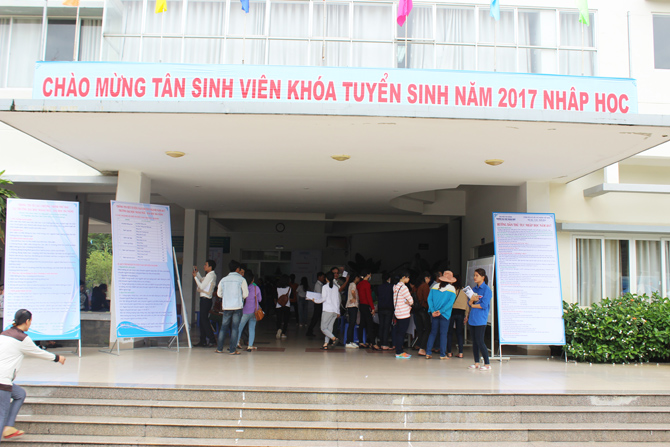 Băng rôn, khẩu hiệu chào đón được treo khắp nơi trong trường. Từ sáng sớm rất đông các sinh viên và quý phụ huynh đã có mặt tại khuôn viên Trường để làm thủ tục nhập học. Niềm vui xen lẫn niềm tự hào hiện rõ trên khuôn mặt của từng sinh viên khi các bạn chính thức trở thành sinh viên của Trường. Các sinh viên với tâm trạng háo hức, hồi hộp nhưng không tránh khỏi những băn khoăn lo lắng. Với nhiều năm kinh nghiệm tổ chức đón tiếp sinh viên nên công tác đón tiếp của Trường Đại học Ngoại ngữ – Đại học Đà Nẵng đã diễn ra suôn sẻ, nhanh chóng, trật tự và an toàn. Với sự hỗ trợ của các thầy cô giáo và các anh chị sinh viên tình nguyện, các em đã từng bước thực hiện các thủ tục nhập học của mình.
