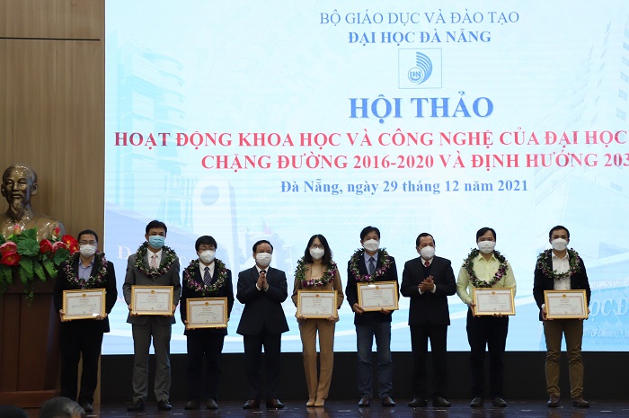 Tại Hội thảo, 13 cá nhân là các nhà khoa học, giảng viên có thành tích tiêu biểu trong hoạt động khoa học công nghệ, có công trình, sản phẩm được ứng dụng, chuyển giao và công bố khoa học xuất sắc giai đoạn 2016-2020 đã được biểu dương và khen thưởng, trong đó có PGS.TS. Nguyễn Văn Long – Phó Hiệu trưởng Trường Đại học Ngoại ngữ vì đã đạt thành tích xuất sắc về công bố khoa học.