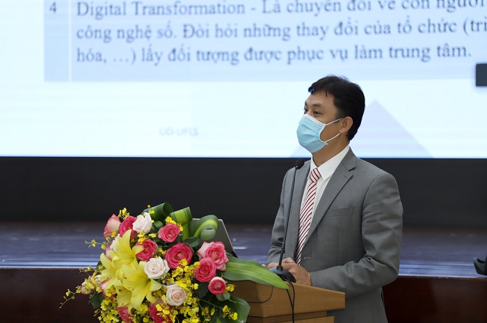 Trong khuôn khổ Hội thảo, PGS.TS. Nguyễn Văn Long đã trình bày tham luận “Kế hoạch chuyển đổi số nhằm nâng cao chất lượng đào tạo và nghiên cứu khoa học của Trường Đại học Ngoại ngữ, Đại học Đà Nẵng trong giai đoạn 2021-2025”. Theo đó, nhằm góp phần tăng cường hiệu quả trong các lĩnh vực đào tạo, Khoa học công nghệ và quản trị đại học, chuyển đổi số là xu hướng tất yếu và cũng là kế hoạch mà Nhà trường phải thực hiện được. Dựa trên những đánh giá thực trạng công nghệ thông tin bao gồm: hạ tầng CNTT, hạ tầng ứng dụng trong hoạt động đào tạo, hạ tầng ứng dụng trong KHCN và hạ tầng ứng dụng trong quản trị đại học, kế hoạch nêu rõ các bước và giải pháp thực hiện để các trường đại hoc thành viên thuộc ĐHĐN có thể tham khảo và ứng dụng.