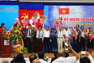 GS.TS Trần Văn Nam-Thành uỷ viên, Bí thư Đảng uỷ, Giám đốc Đại học Đà Nẵng thay mặt Lãnh đạo Đại học Đà Nẵng tặng lẵng hoa chúc mừng đến TS. Nguyễn Văn Hiện-Trưởng Khoa tiếng Nga và phát biểu tại Lễ kỷ niệm 30 năm thành lập Khoa tiếng Nga và 40 năm giảng dạy tiếng Nga tại Đà Nẵng. |
