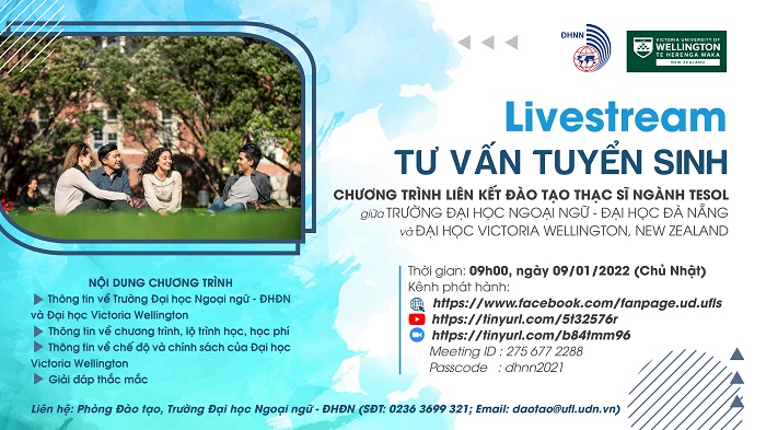 Tư vấn tuyển sinh trực tuyến chương trình liên kết đào tạo trình độ thạc sĩ ngành Phương pháp giảng dạy tiếng Anh (TESOL) giữa Trường Đại học Ngoại ngữ và Đại học Victoria Wellington, New Zealand