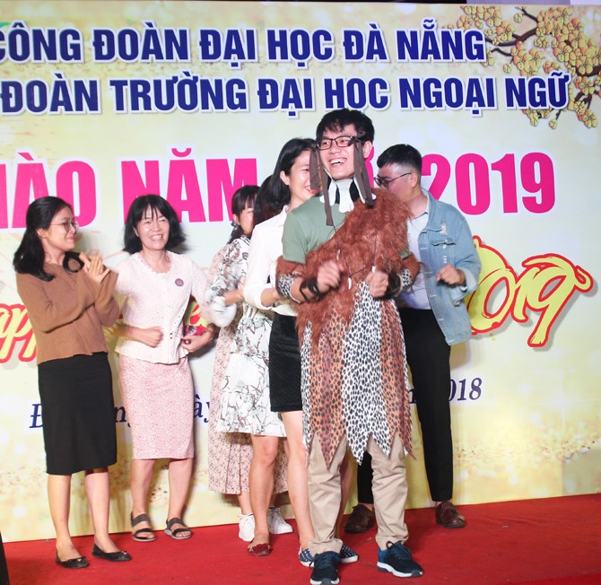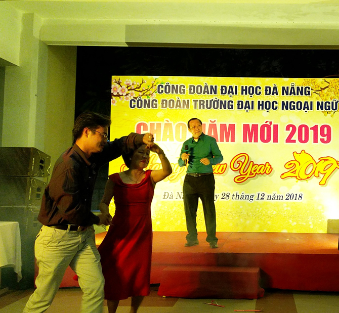 Chương trình Chào đón năm mới diễn ra sôi nổi với chương trình giao lưu văn nghệ và các trò chơi vô cùng thú vị như: cặp đôi hoàn hảo, xổ số, nốt nhạc vui nhộn,… Các thầy cô cùng khai tiệc mở sâm banh và hát vang giai điệu của bài hát chúc mừng năm mới để hướng tới một năm mới tràn đầy khí thế và thành công. Buổi dạ hội “Chào đón năm mới 2019”, kết thúc trong không khí đầm ấm, vui vẻ. Tất cả cùng hy vọng về những điều tốt đẹp nhất sẽ đến với Trường Đại học Ngoại ngữ trong năm mới 2019.